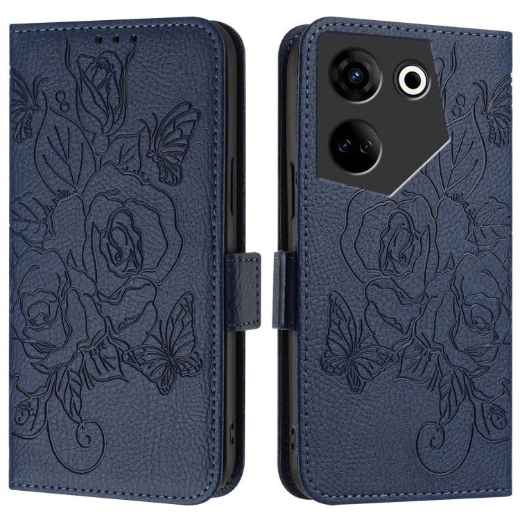 Funda para Tecno Camon 20/20 Pro 4G de Cuero Antirrobo RFID con Relieve (Azul Oscuro)