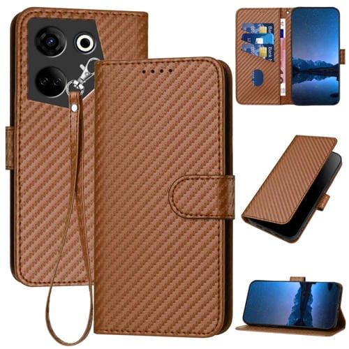 Funda de Cuero para Tecno Camon 20/20 Pro 4G Yx0070 con Hebilla de Fibra de Carbono y Cordón (Café)
