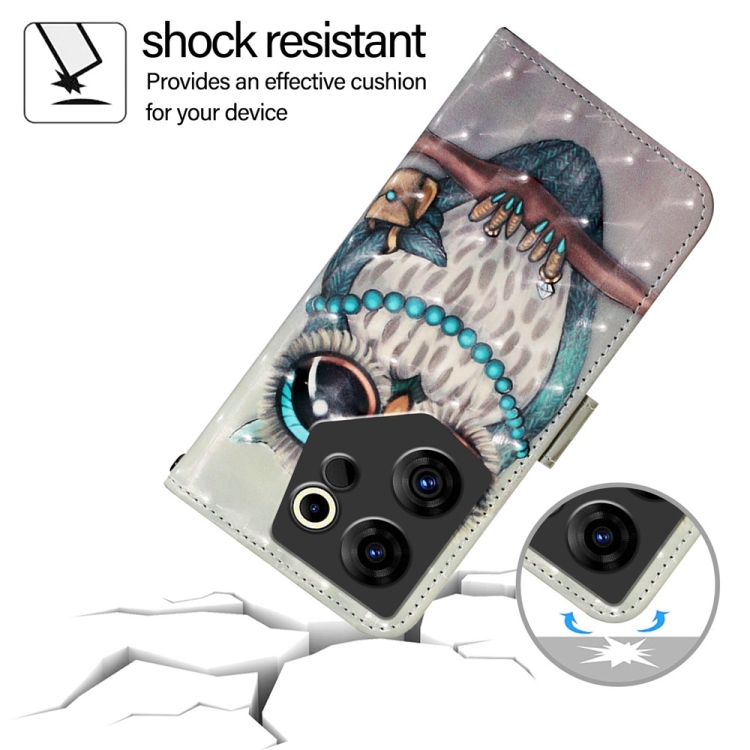 Funda para Tecno Camon 20 Premier de Cuero con Tapa Horizontal y Pintura 3D (Búho Gris)