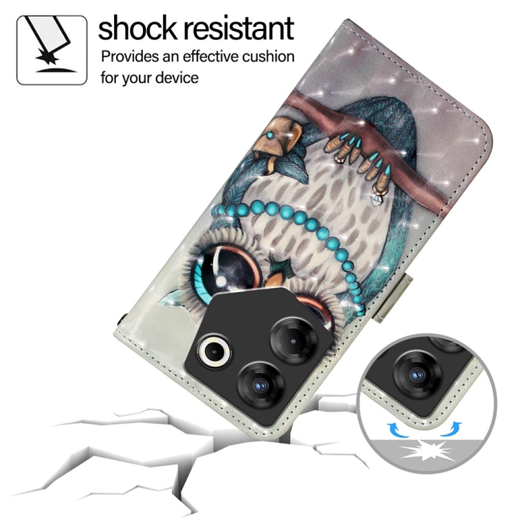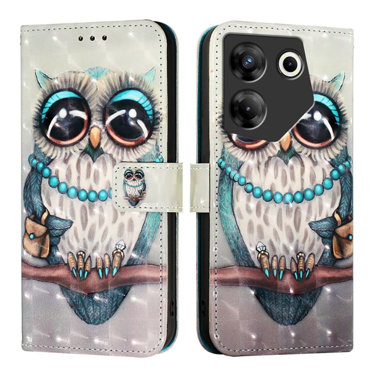 Funda para Tecno Camon 20 Pro 5G de Cuero con Tapa Horizontal y Pintura 3D (Búho Gris)