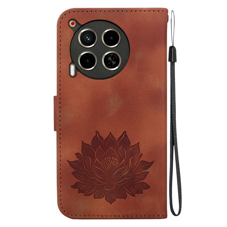 Funda de Cuero para Tecno Camon 30 4G y 5G Lotus en Relieve (Marrón)