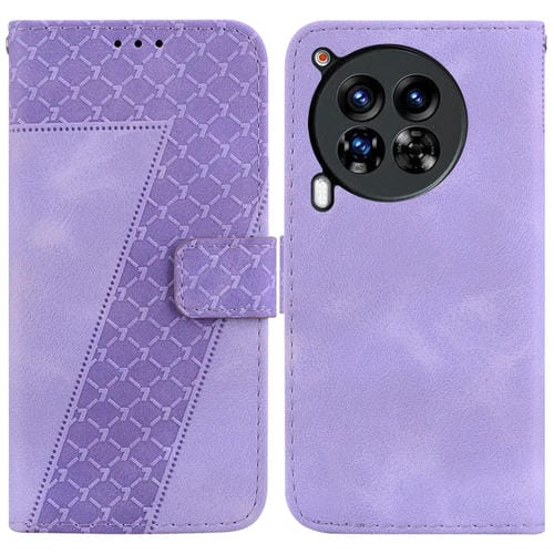 Funda de Cuero para Tecno Camon 30 Premier 5G con Relieve en Forma de Siete (Púrpura)