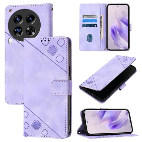Funda de Cuero para Tecno Camon 30 Premier 5G Skin Feel en Relieve (Púrpura Claro)