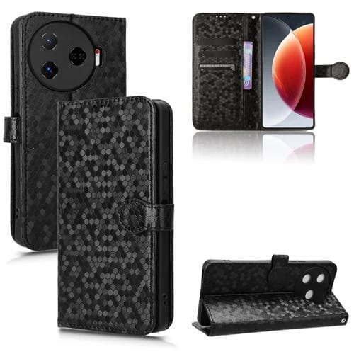 Funda de Cuero para Tecno Camon 30 Pro 5G con Textura de Punto de Panal (Negro)