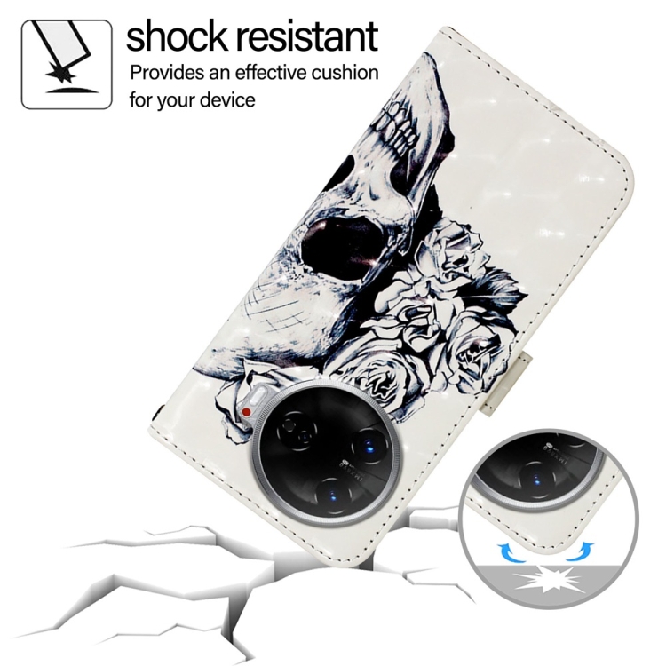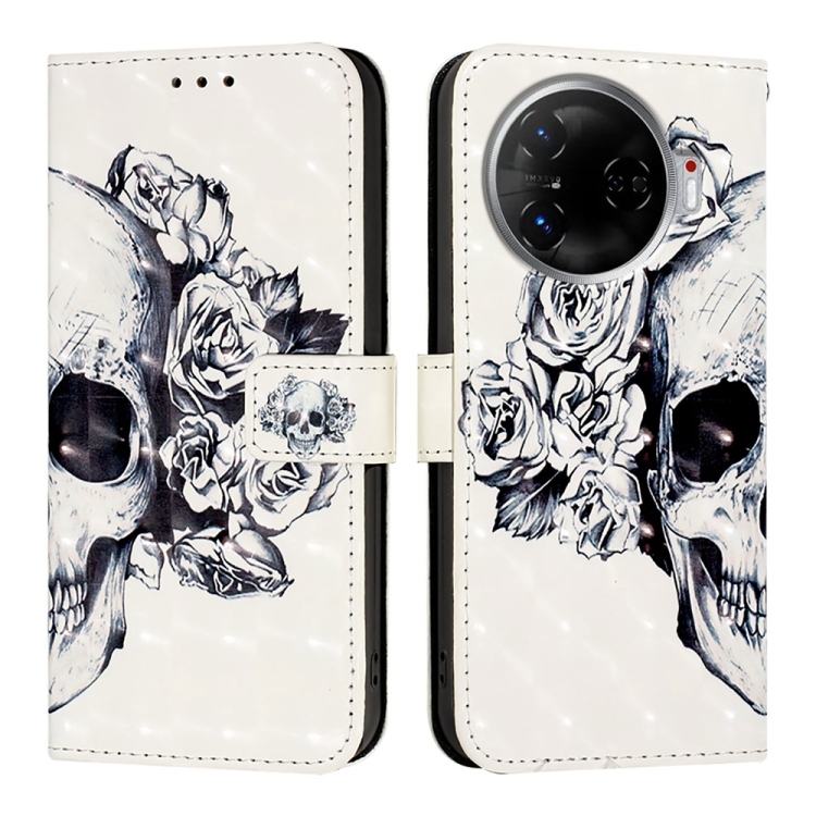 Funda de Cuero para Tecno Camon 30 Pro con Tapa Horizontal y Pintura 3D (Calavera)