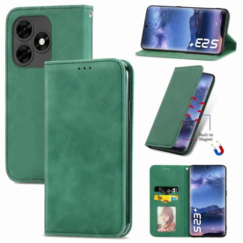 Funda para Tecno Itel S23 de Cuero con Tapa Magnética y Sensación de Piel Retro (Verde)