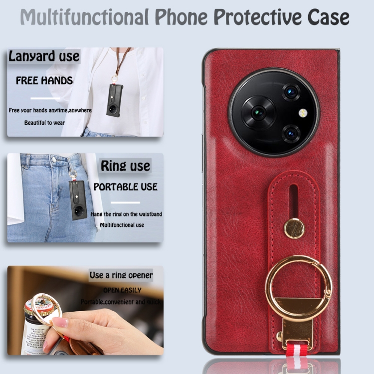 Funda para Tecno Phantom V Fold con Correa de Cuero y Tapa Trasera (Rojo)