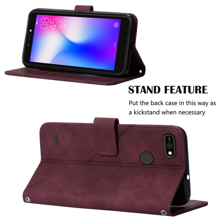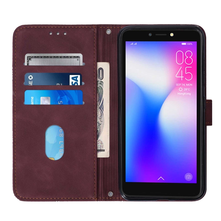 Funda de Cuero 3D para Tecno Pop 2F Crossbody (Vino Rojo)