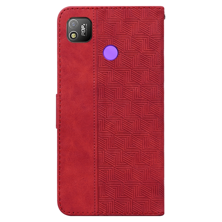 Caja de Cuero Geométrico en Relieve para Tecno Pop 4 (Rojo)