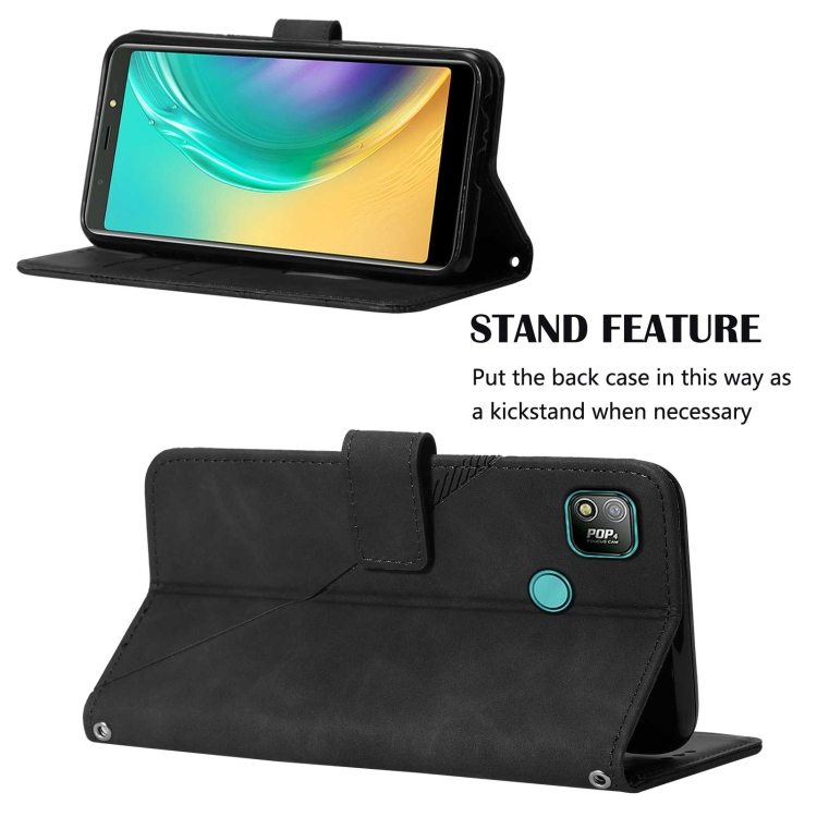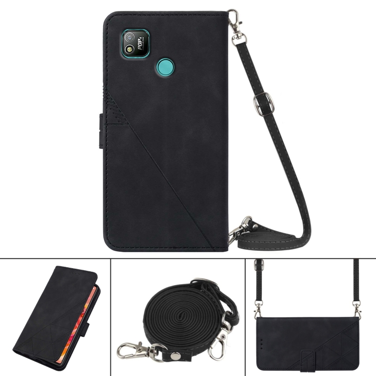 Funda de Cuero 3D para Tecno Pop 4 Crossbody (Negro)