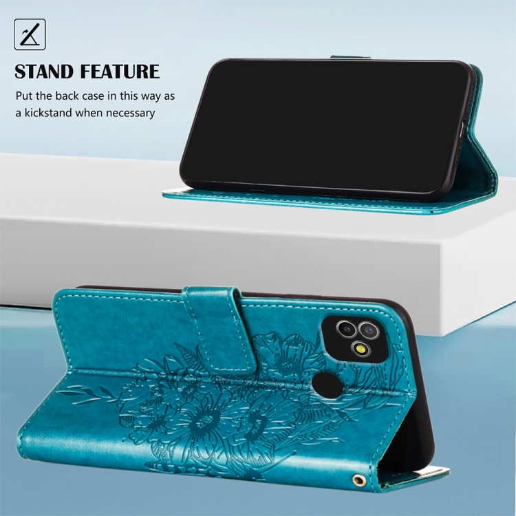 Caja Telefónica de Cuero para Tecno Pop 5 con Mariposa en Relieve (Azul)