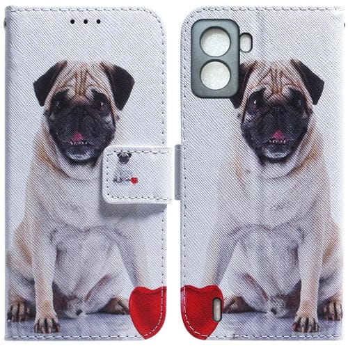 Funda de Cuero para Tecno Pop 6 con Dibujo Coloreado y Protección sin Huellas (Pug)