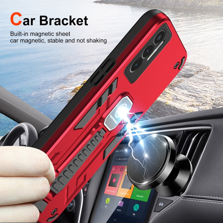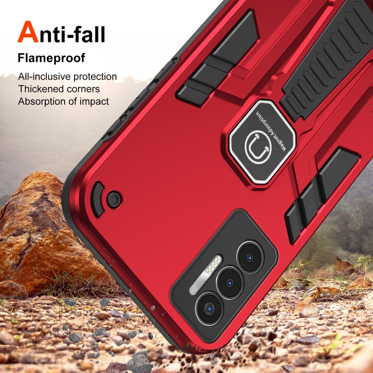 Funda 2 en 1 para Tecno Pova 3 con Soporte y Protección a Prueba de Golpes (Rojo)