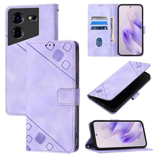 Funda de Cuero para Tecno Pova 5 Pro 5G Skin Feel en Relieve (Púrpura Claro)