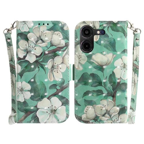 Funda de Cuero para Tecno Pova 5 Pro con Tapa Horizontal y Diseño 3D (Flor de Acuarela)