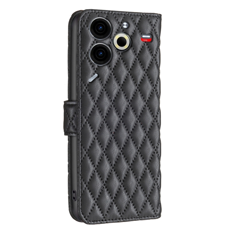 Funda de Cuero con Tapa para Tecno Pova 6 Neo Diamond Lattice (Negro)
