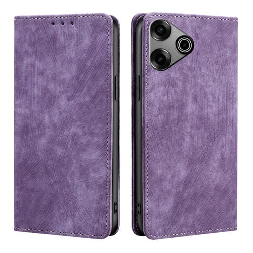 - 1x Funda para Tecno Pova 6 Pro 5G Cuero Magnética con RFID y Cepillo Antirrobo (Púrpura)