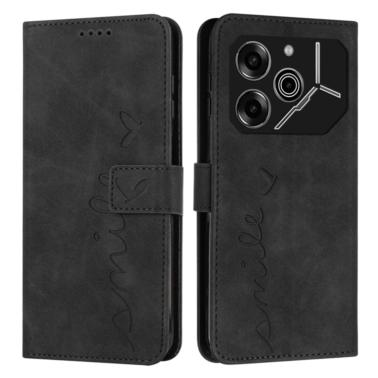 Funda para Tecno Pova 6 Pro Skin Feel Heart de Cuero en Relieve con Cordón Largo (Negro)