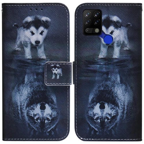 Funda de Cuero para Tecno Pova Ld7 con Dibujo de Lobo y Perro (Color)