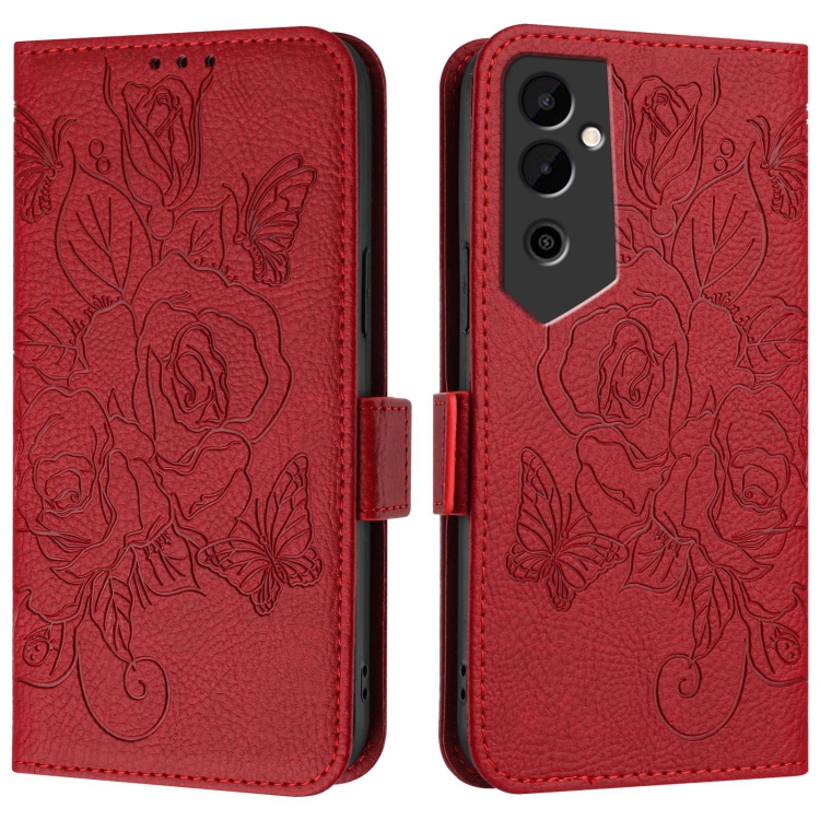 Funda de teléfono para Tecno Pova Neo 2 Cuero antirrobo RFID con relieve (Rojo)