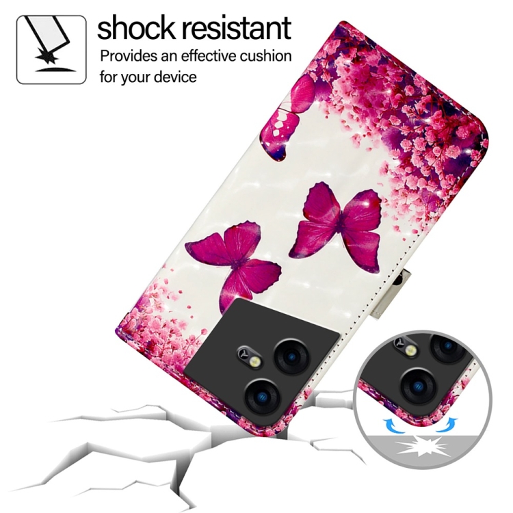 Funda para Tecno Pova Neo 3 de Cuero con Tapa Horizontal y Pintura 3D (Mariposa Rosa)