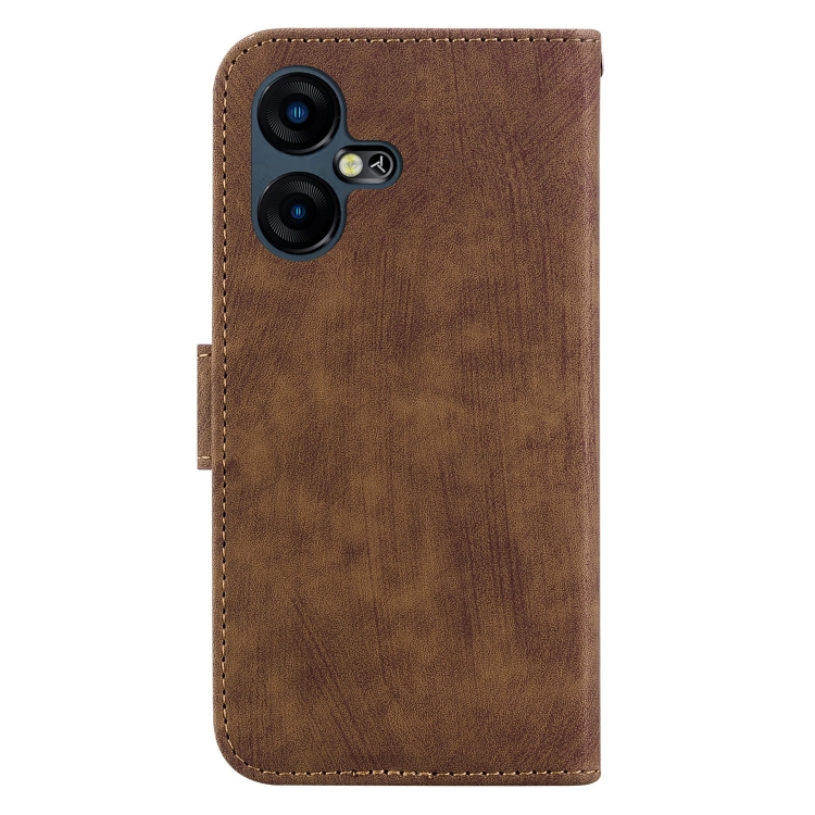 Funda de Cuero para Tecno Pova Neo 3 Little Tiger en Relieve (Marrón)