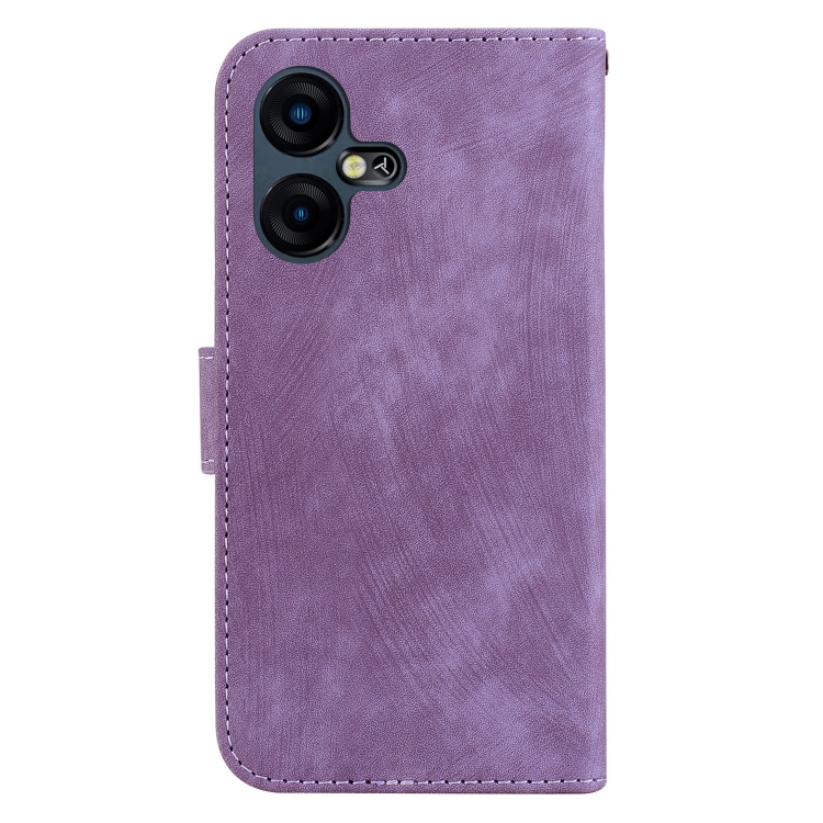 Funda de Cuero para Tecno Pova Neo 3 Little Tiger en Relieve (Púrpura)