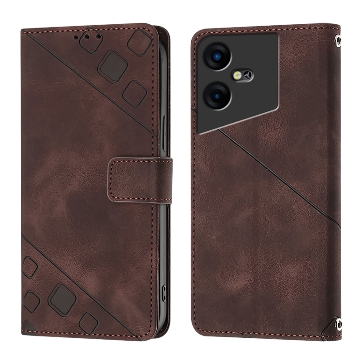 Funda de Cuero Skin Feel para Tecno Pova Neo 3 en Relieve (Marrón)
