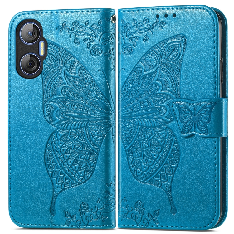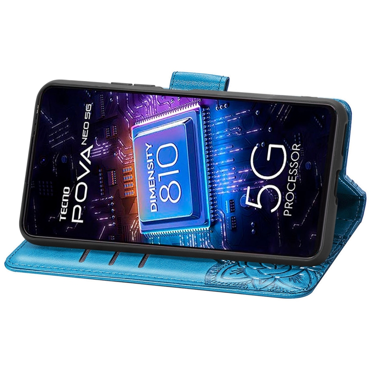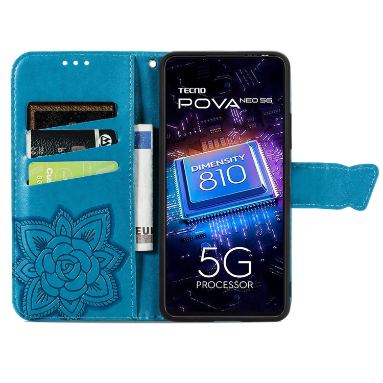 Estuche para Teléfono Tecno Pova Neo 5G Butterfly Love Flower Cuero En Relieve (Azul)