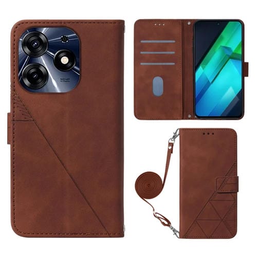 Funda de Cuero para Tecno Spark 10 Pro y Ki7 Crossbody 3D con Tapa en Relieve (Marrón)