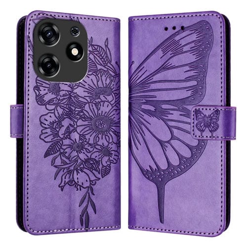 Funda de Cuero para Tecno Spark 10 Pro Magic Magenta con Mariposa en Relieve (Púrpura Claro)