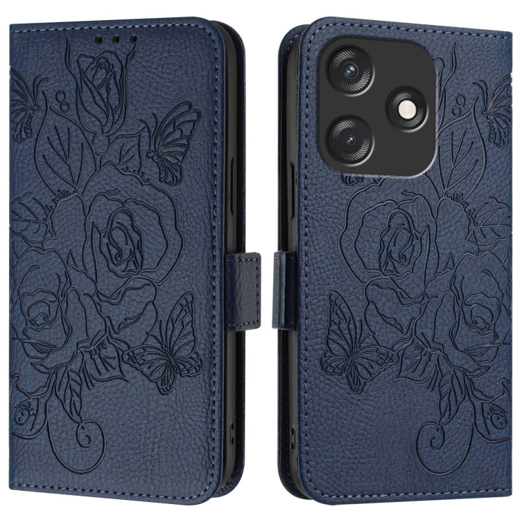 Funda de Cuero Antirrobo RFID para Tecno Spark 10C con Relieve Rosa (Azul Oscuro)