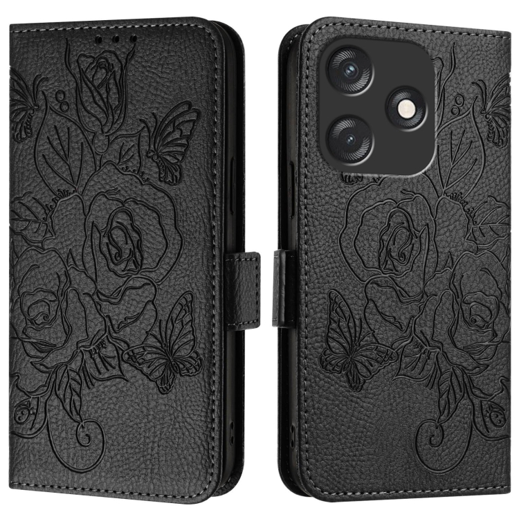 Funda de Cuero Antirrobo RFID para Tecno Spark 10C con Relieve Rosa (Negro)