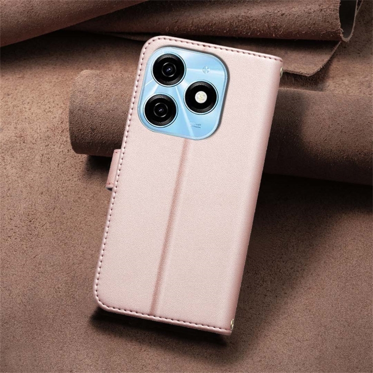 Funda de Cuero para Tecno Spark 20 con Textura Cuadrada (Oro Rosa)