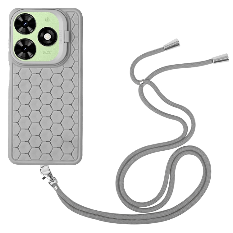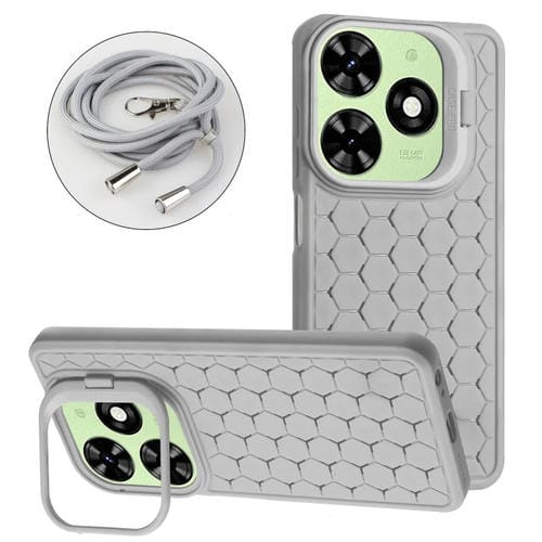 Funda para Tecno Spark 20 Honeycomb Radiating Holder TPU con Cordón (Gris)