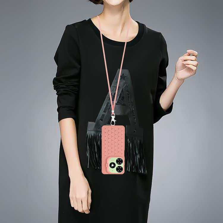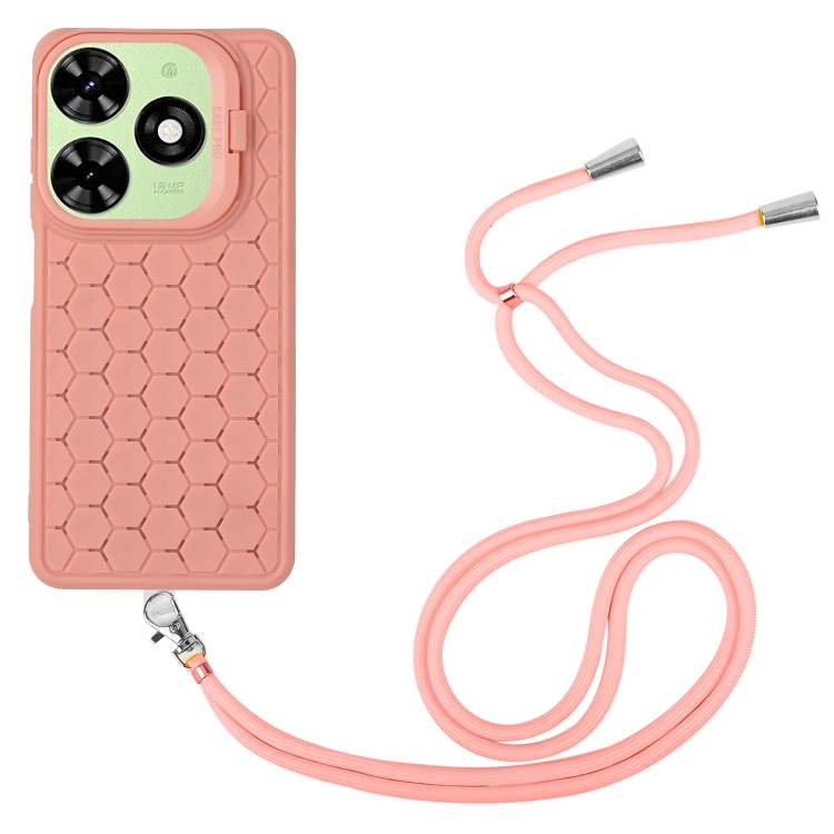 Funda para Tecno Spark 20 Honeycomb Radiating Holder de TPU con Cordón (Rosa)