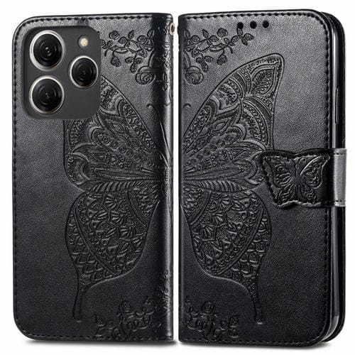 Funda de Cuero para Tecno Spark 20 Pro Butterfly Love Flower en Relieve (Negro)