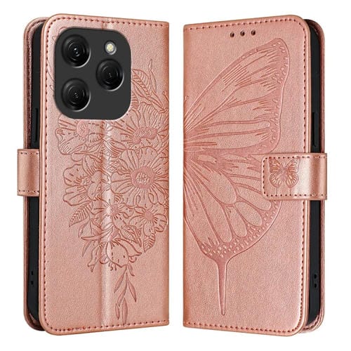 Funda de Cuero para Tecno Spark 20 Pro con Mariposa en Relieve (Oro Rosa)