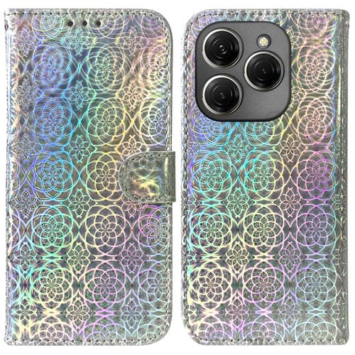 Funda de Cuero para Tecno Spark 20 Pro con Hebilla Magnética Colorida (Plata)