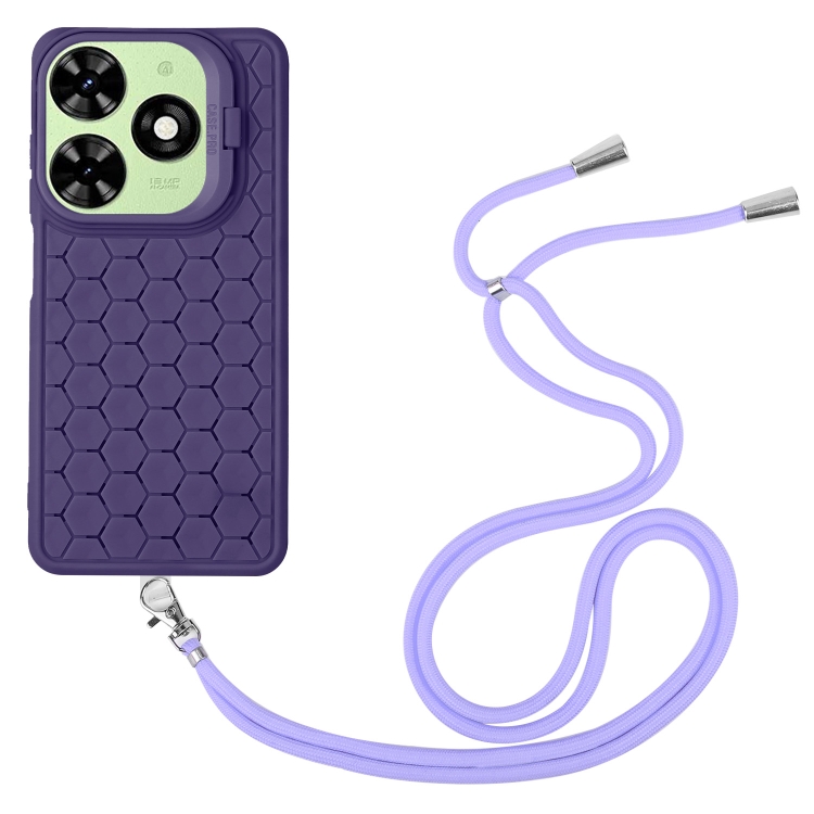 Funda para Tecno Spark 20C Honeycomb Radiating Holder TPU con Cordón (Púrpura)