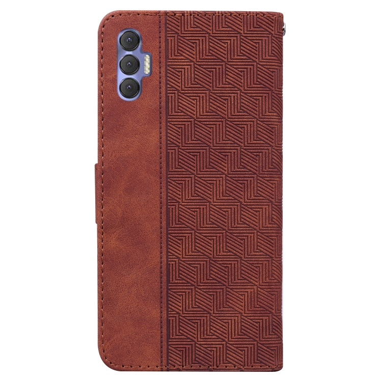 Estuche para Tecno Spark 8 Pro de Cuero en Relieve Geométrica (Marrón)