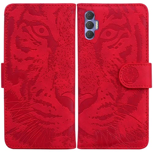 Funda Flip Leather Case para Tecno Spark 8 Pro con Estampado Tiger Horizontal (Rojo)