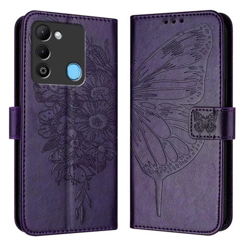 Funda de Cuero para Tecno Spark 9 con Mariposa en Relieve (Púrpura Oscuro)