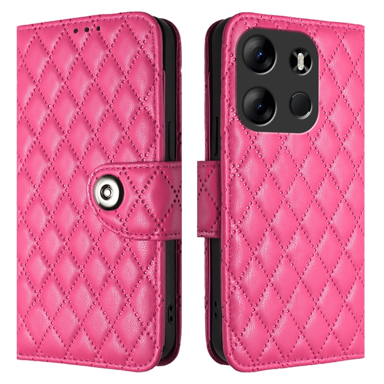 Funda para Teléfono Tecno Spark Go 2023 de Cuero con Tapa Textura Rombal y Cordón (Rojo Rosa)