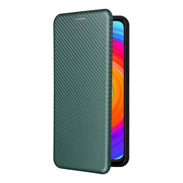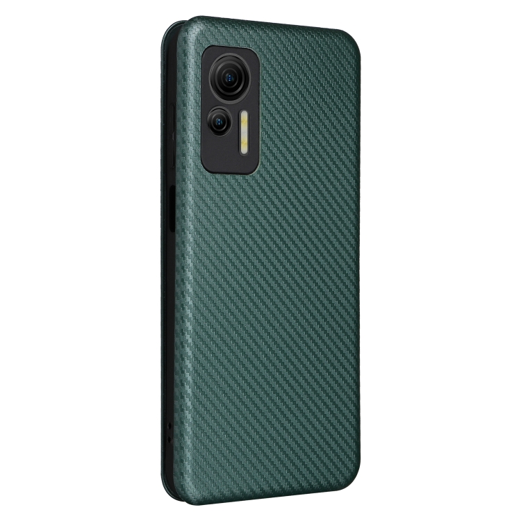 Funda para Ulefone Note 14 de Cuero con Textura de Fibra de Carbono (Verde)