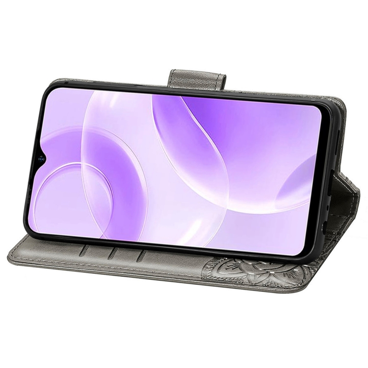 Funda para Ulefone Note 15 Cuero con Relieve Flor de Amor y Mariposa (Gris)