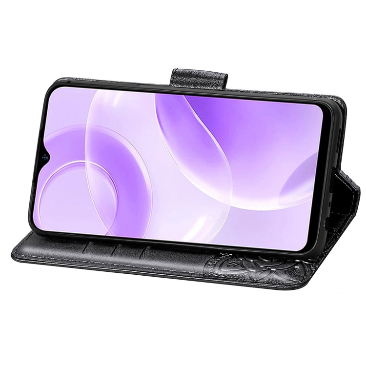 Funda para Ulefone Note 15 Cuero con Relieve Flor de Amor y Mariposa (Negro)
