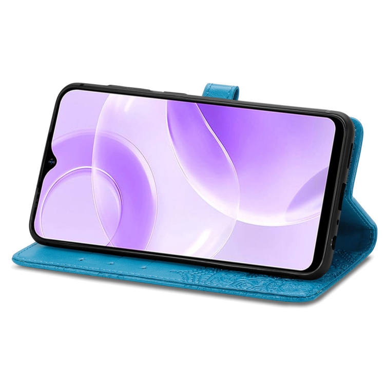 Funda para Ulefone Note 15 Cuero con Relieve de Flores Mandala (Azul)