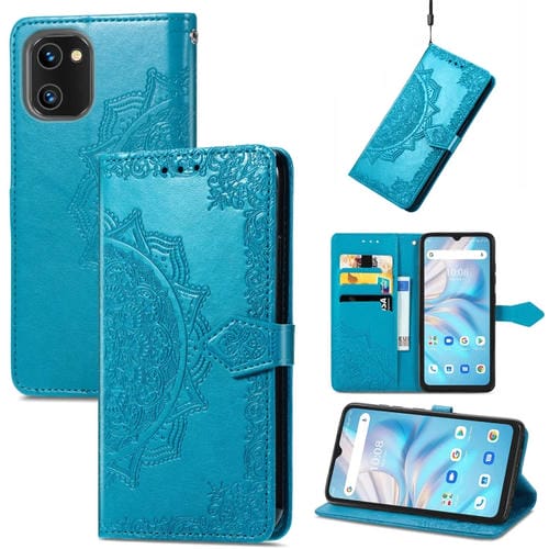 Funda para Umidigi A13S Mandala Flower de Cuero en Relieve (Azul)