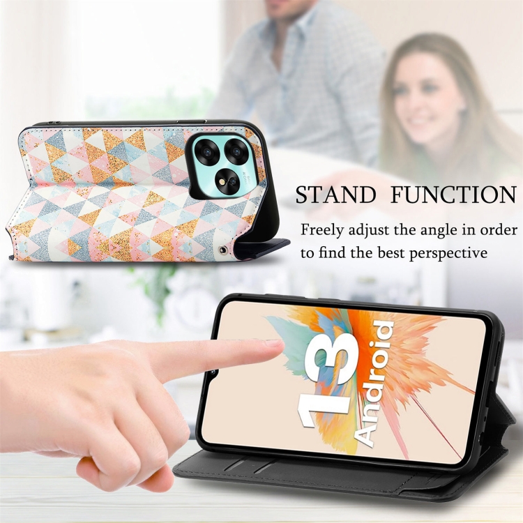 Funda de Cuero Magnética Caseneo para Umidigi A15 (Rombo)